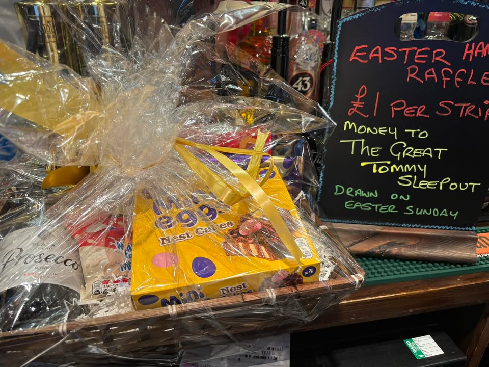 EASTER HAMPER RAFFLE Tickets now available, £1 per strip with all proceeds going to our charity event for The Great Tommy Sleepout on Saturday 28th March, don’t forget this is for homeless veterans To be drawn on Easter Sunday Please get as many as you can afford to help this great charity. Thanks all Maria & ‘Team Vic’ xx